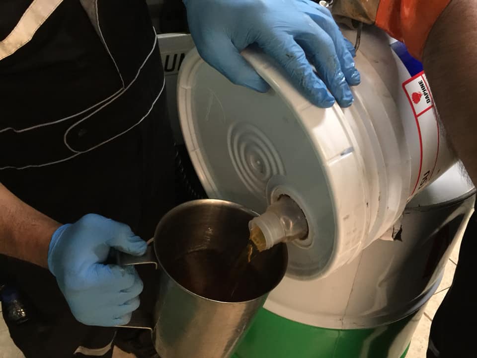 ก่อนเทสเราทำความสะอาดเครื่อง ดูดถ่ายน้ำมันเก่าทิ้ง